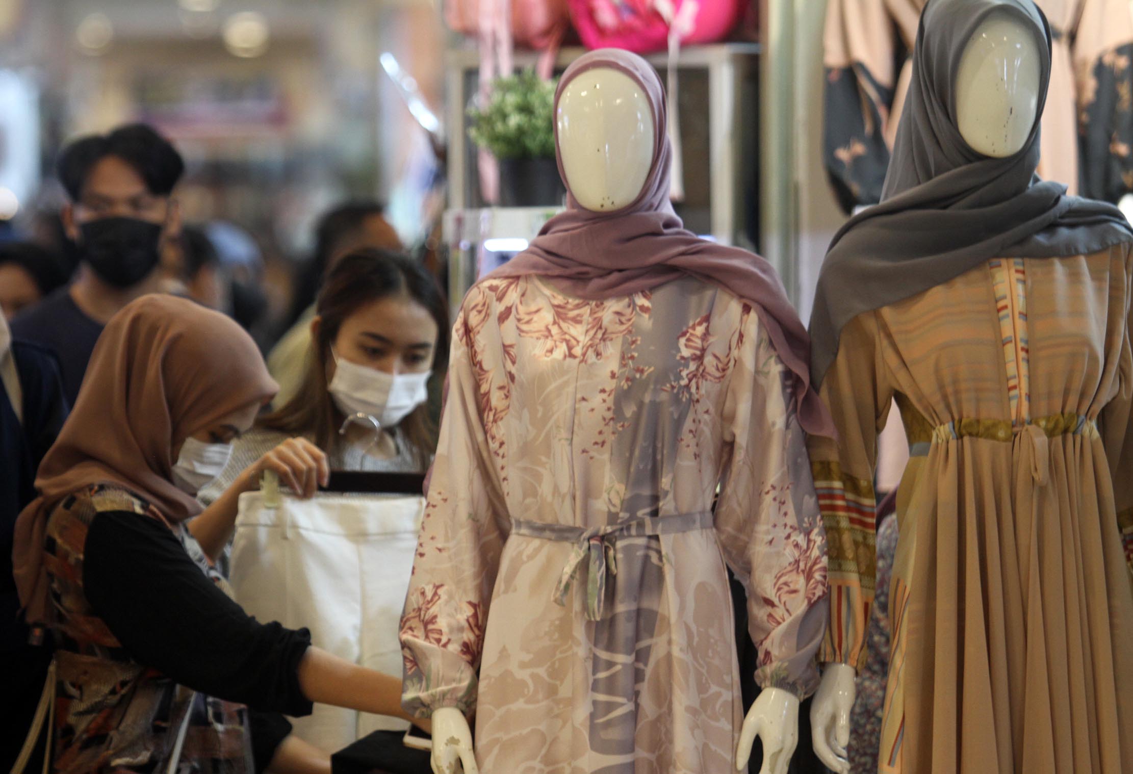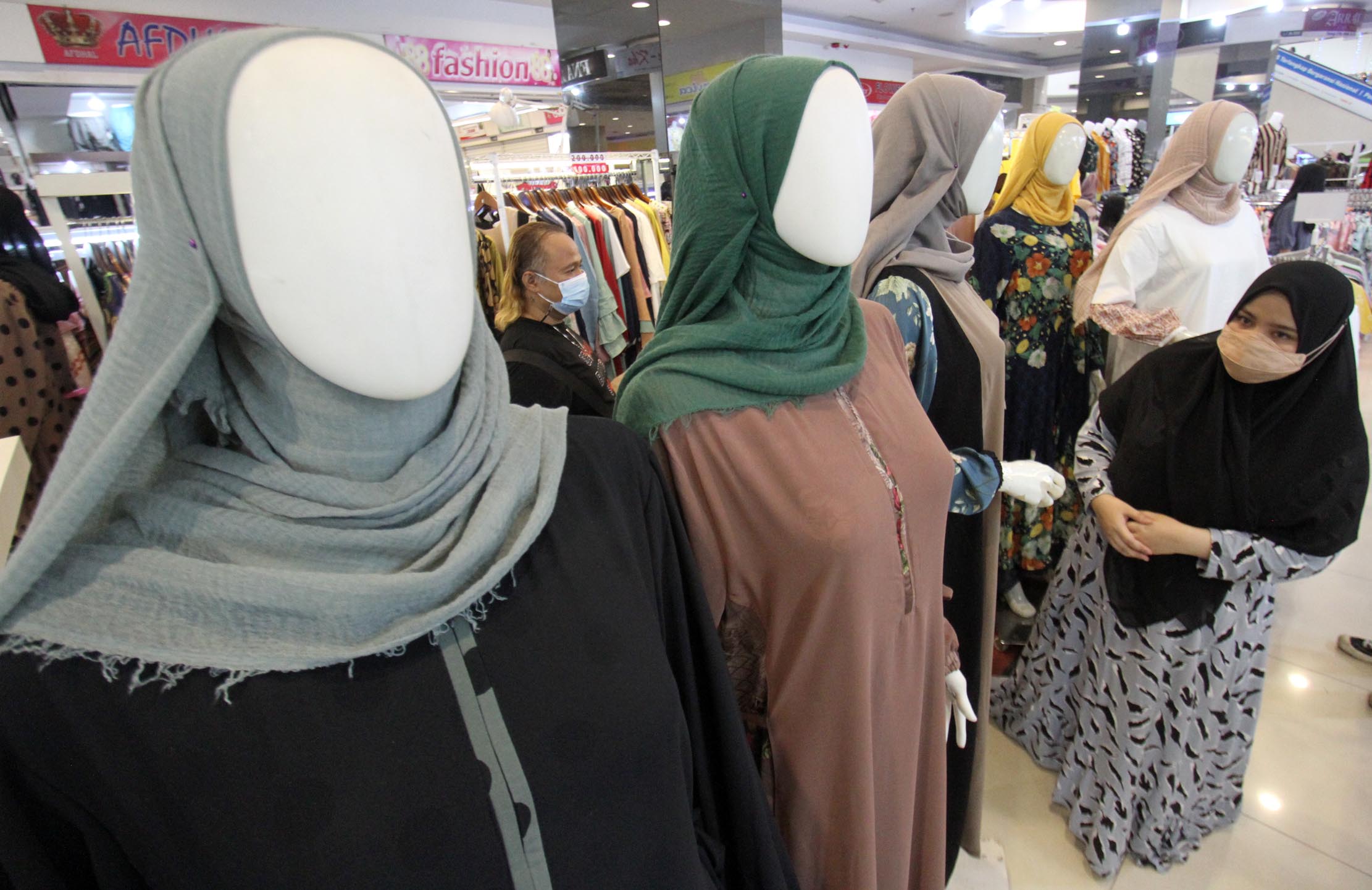 Memasuki H-3 masyarakat nampak antusias berbelanja sebagai persiapan menyambut lebaran,salah satunya yang nampak di pusat perbelanjaan Tangcity Mal Tangerang, Senin 10 Mei 2021. Foto : Panji Asmoro/TrenAsia