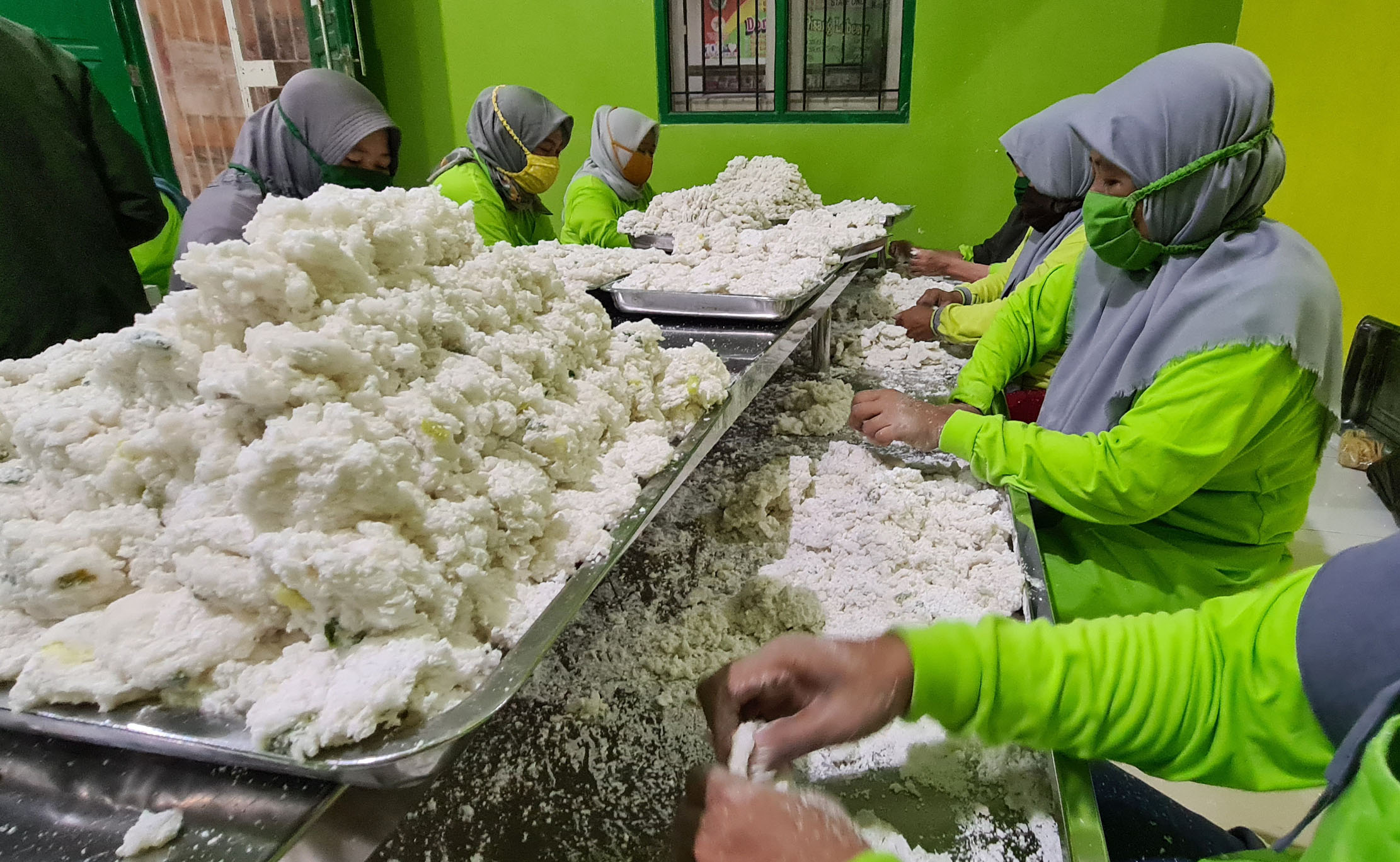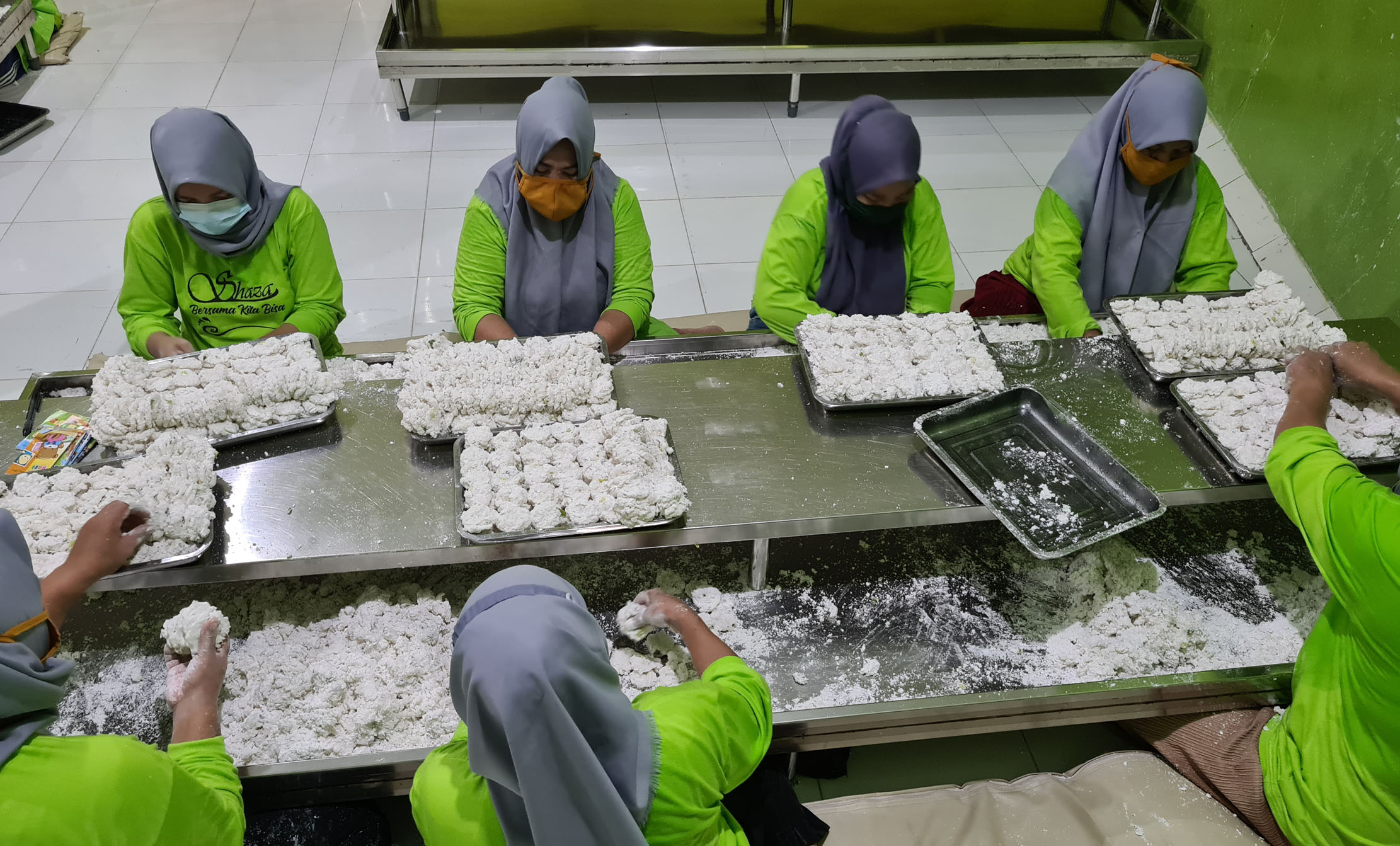 Salah satunya adalah industri makanan tradisional cireng di sentra UMKM pembuatan Cireng Crispy di Pamulang, Tangerang Selatan. Dalam sehari, pabrik rumahan tersebut mampu menghasilkan 1,5 ton cireng crispy untuk pasar seluruh Indonesia, dengan omset Rp800 juta per bulannya. Foto : Panji Asmoro/TrenAsia