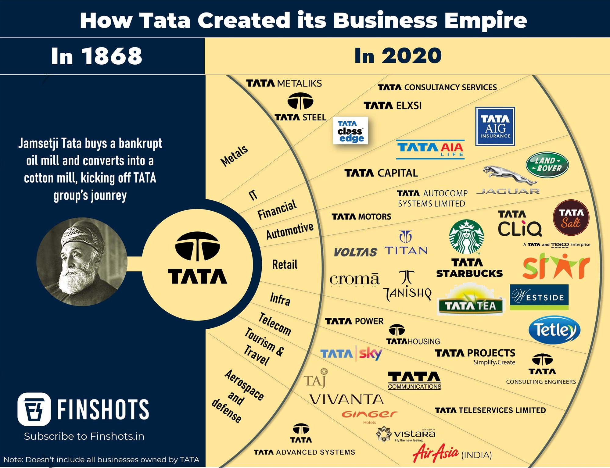 Didirikan pada tahun 1868 oleh visioner Jamsetji Nusserwanji Tata, Tata Group telah menjelma menjadi simbol industrialisasi dan modernisasi India. Sejak awal berdirinya, Jamsetji Tata memiliki pandangan jauh ke depan tentang pentingnya membangun bangsa melalui kekuatan industri, pendidikan, dan inovasi.